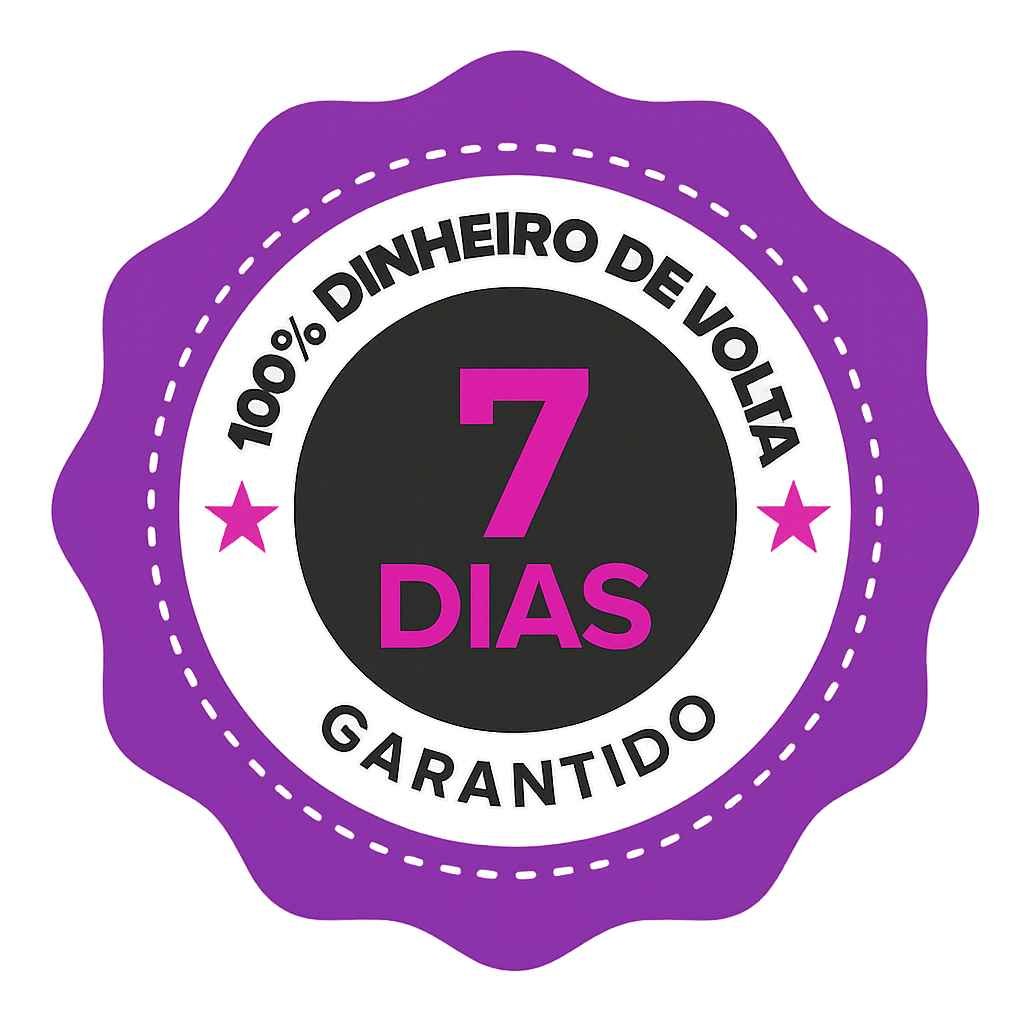 Você está protegido pela nossa GARANTIA DE RISCO ZERO POR 7 DIAS. Se não estiver satisfeito, reembolsamos 100% do seu dinheiro.